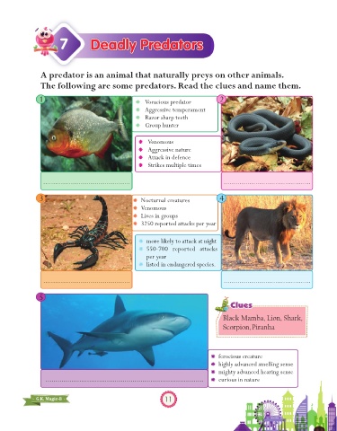 The following are some predators. Read the clues and name them.
