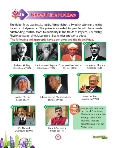 Rudyard Kipling Rabindranath Tagore Chandrasekhar Venkat Har gobind Khorana