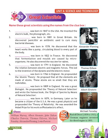 Name these great scientists using the names from the clue box :