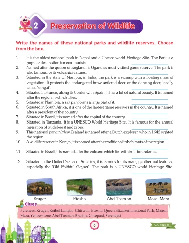 Write the names of these national parks and wildlife reserves. Choose